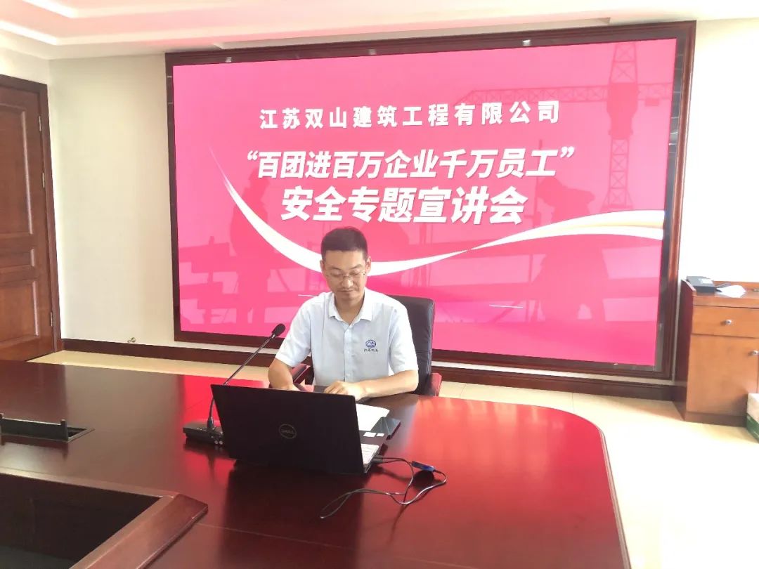 7月11日,江苏双山建筑工程有限公司开展“百团进百万企业千万员工”安全生产专题宣讲。总经理路国锋,副总经理路杰、周泉平及相关科室负责人参加活动。