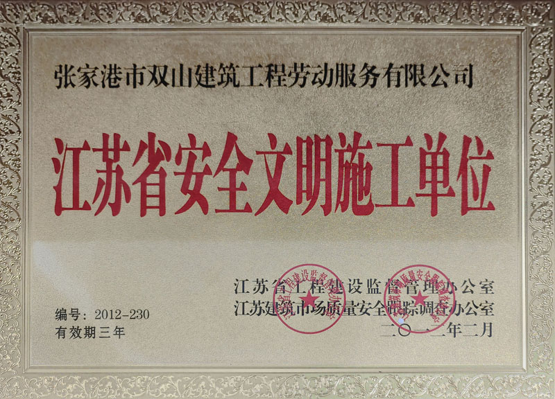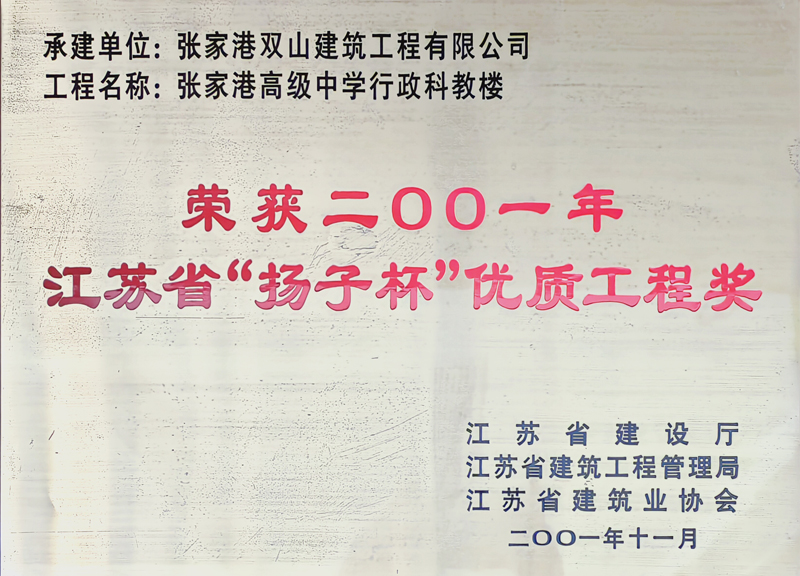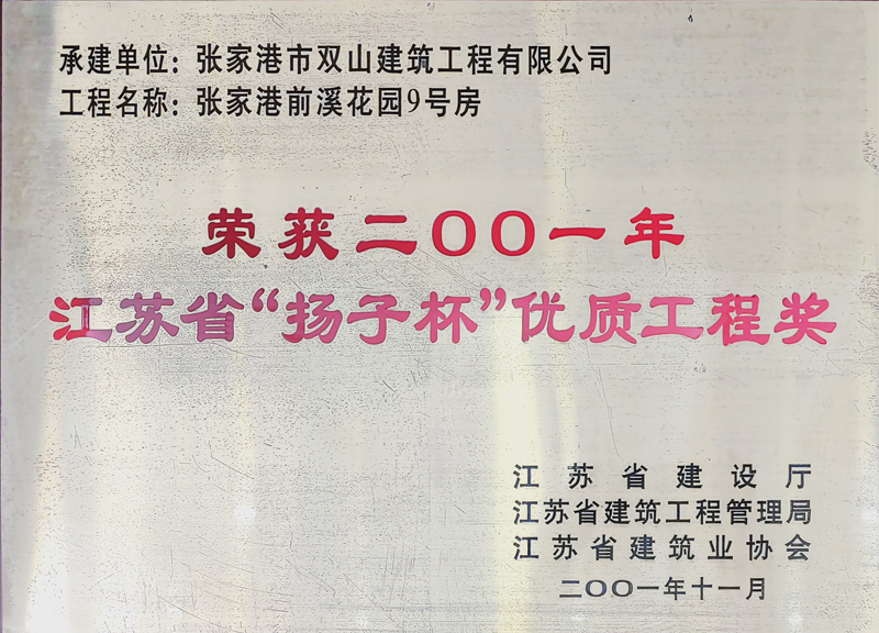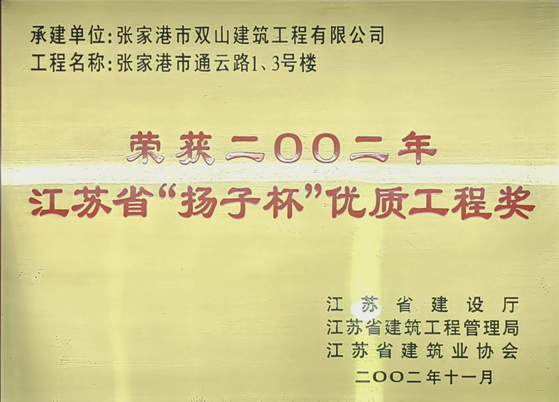 公司先后荣获多项江苏省“扬子杯"优质工程奖和苏州市"姑苏杯"优质工程奖,多项江苏省建筑施工文明工地和苏州市市级文明工地奖...